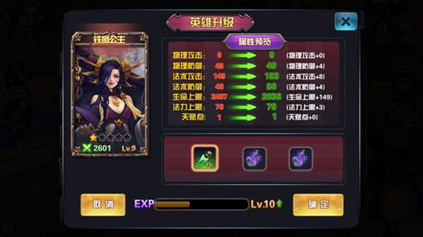 升级英雄等级可以直接增加英雄属性,大大提升英雄强度,开启其他修炼系统。