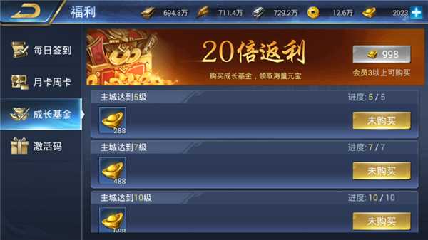 投资20倍返利的成长基金,可以随意花元宝,再也不用控制买买买的欲望了!