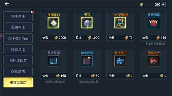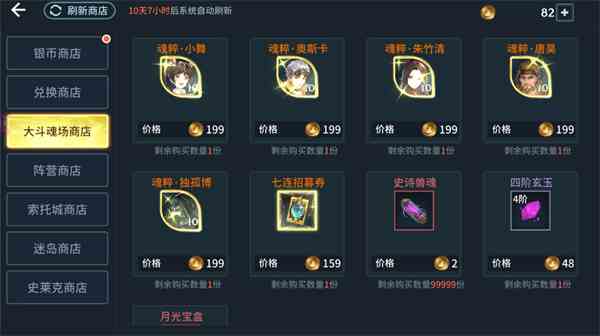 可以在商店买到神印记和灵石,这也是目前游戏中最重要的材料之一。所以一定要记得参加荣耀魂师大赛,排名拿不到基本奖励也很重要。