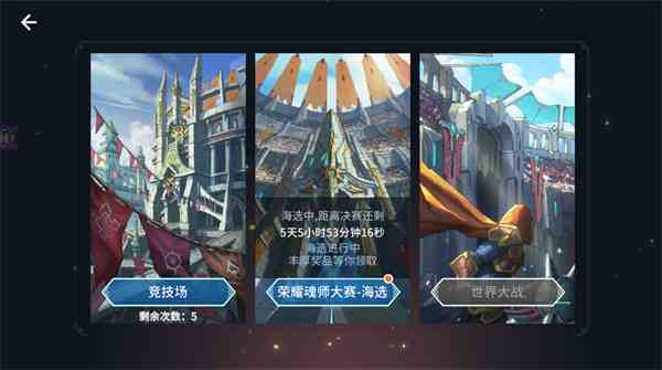 高级竞技场比赛分为海选和决赛。相比竞技场,奖励更丰厚,当然需要更强大的实力才能晋级。
